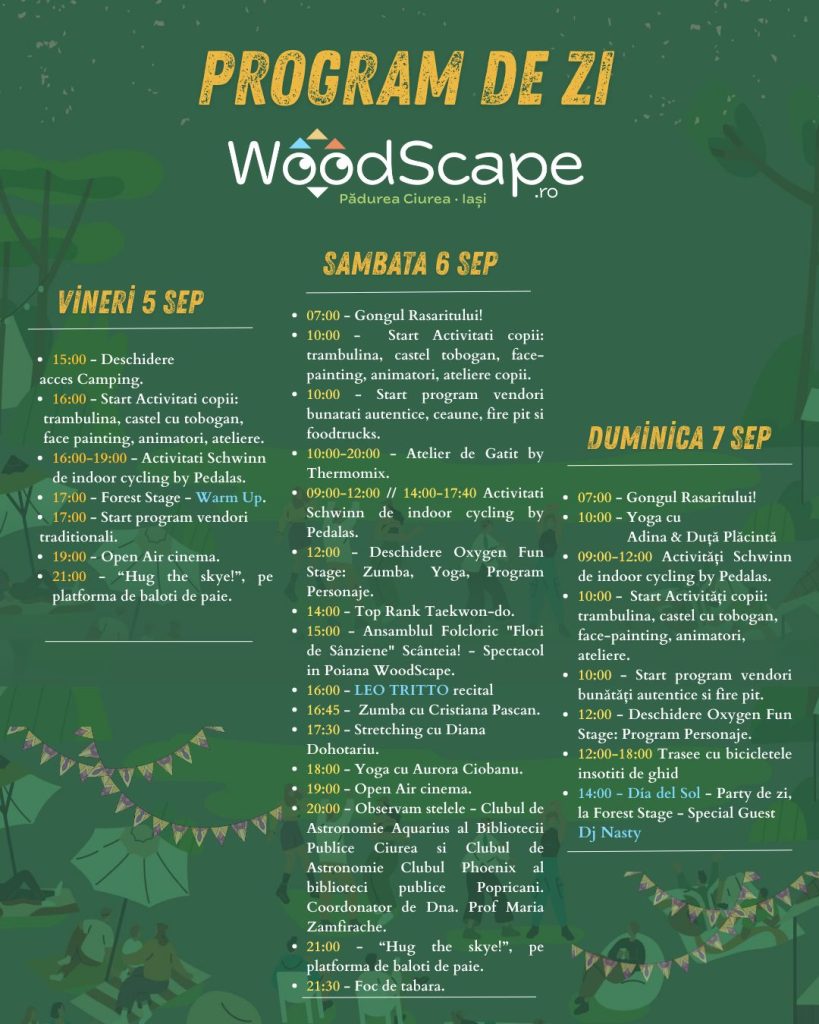 Woodscape te invită in perioada 5-7 septembrie 2025 la a treia ediție a unui eveniment de neuitat, unde natura se îmbină perfect cu muzica, arta și oamenii pasionați. În septembrie, te așteptăm în inima Pădurii din Piciorul Lupului, comuna Ciurea, pentru a crea împreună amintiri de neuitat.